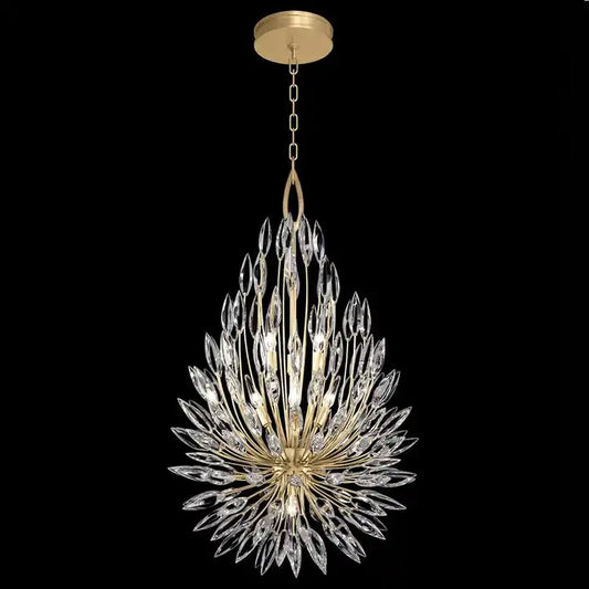 Pendant in gold leaf finish with graceful bouquets of faceted crystal that create a naturally elegant lighting effect. 2022336A