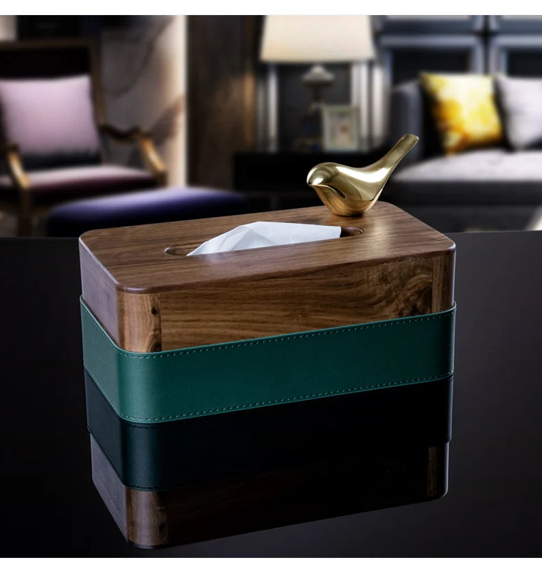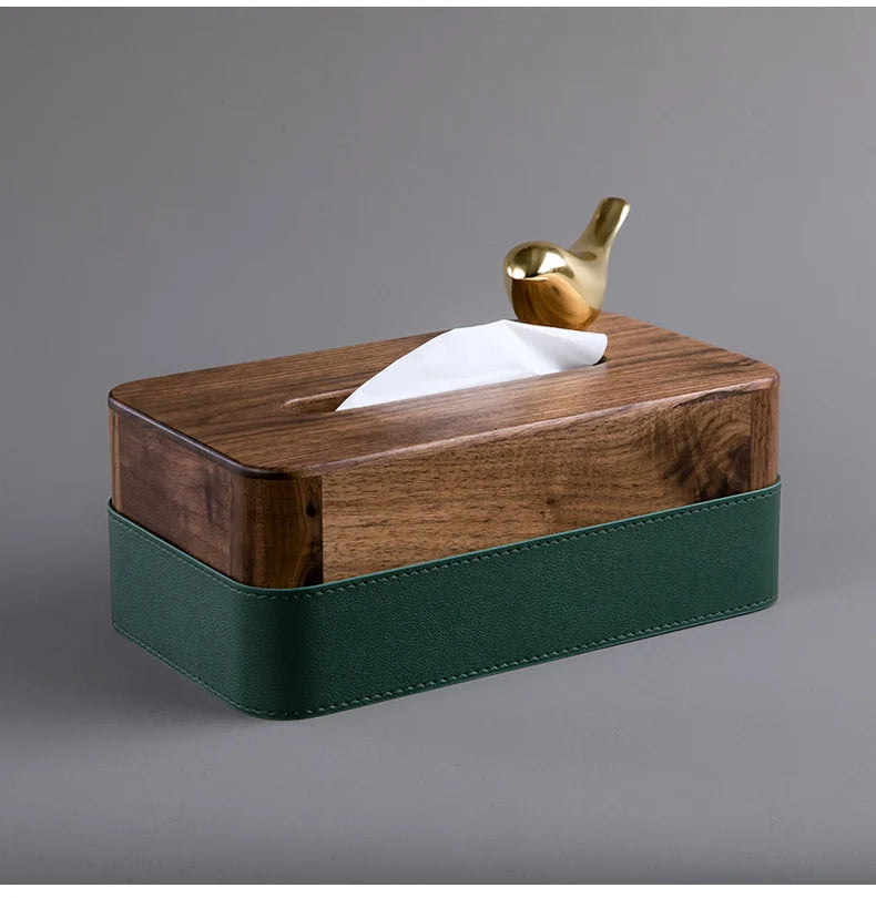 Walnut Wood and Leather Tissue Box 1006